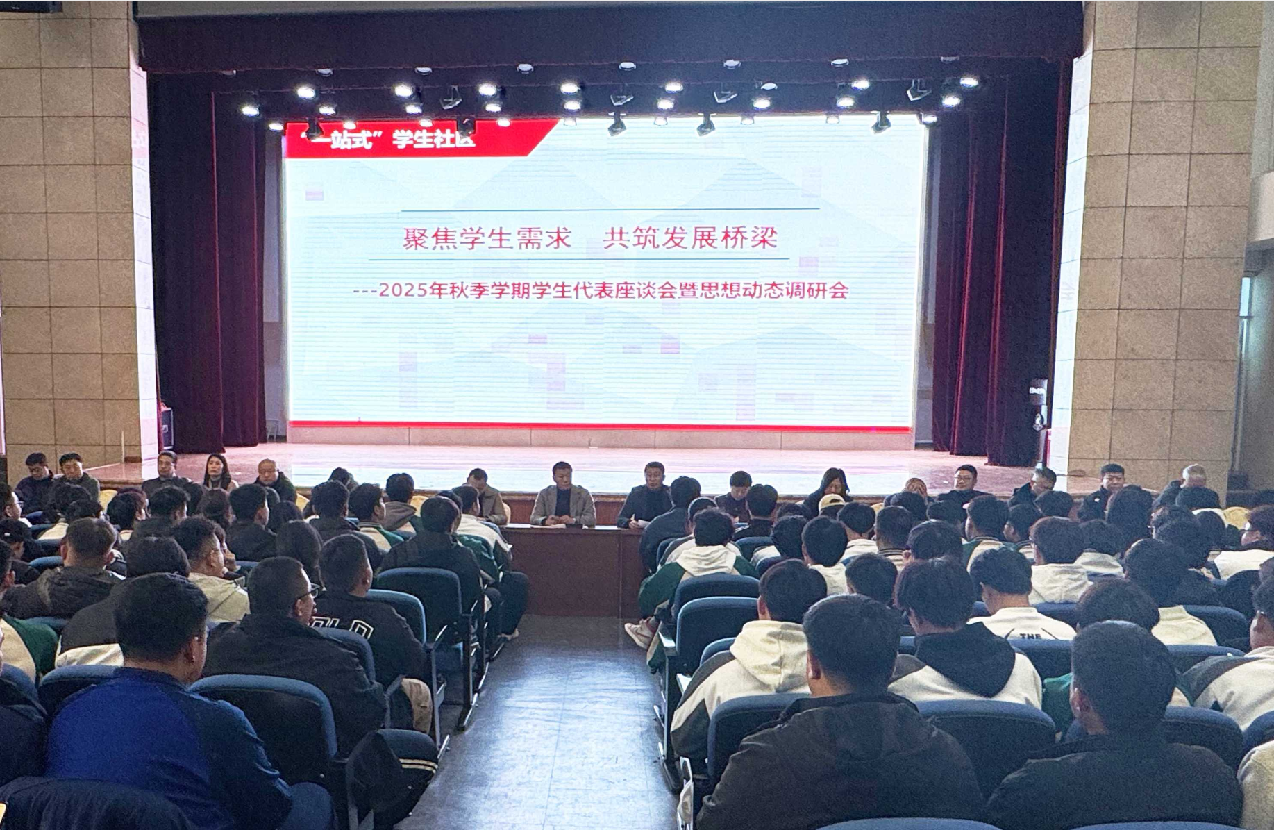 为深入贯彻落实立德树人根本任务,践行以学生为中心的发展思想,持续巩固巡视整改成效,10月24日,学院组织召开“聚焦学生需求共筑发展桥梁”2025年秋季学期学生代表座谈会暨思想动态调研会。学院党委高度重视学生思想政治工作和协同育人机制,副院长卢红军出席会议,各职能部门负责人、二级学院党组织负责同志及第三方服务机构代表共同参加,与200余名学生代表面对面交流,倾听心声、回应关切。