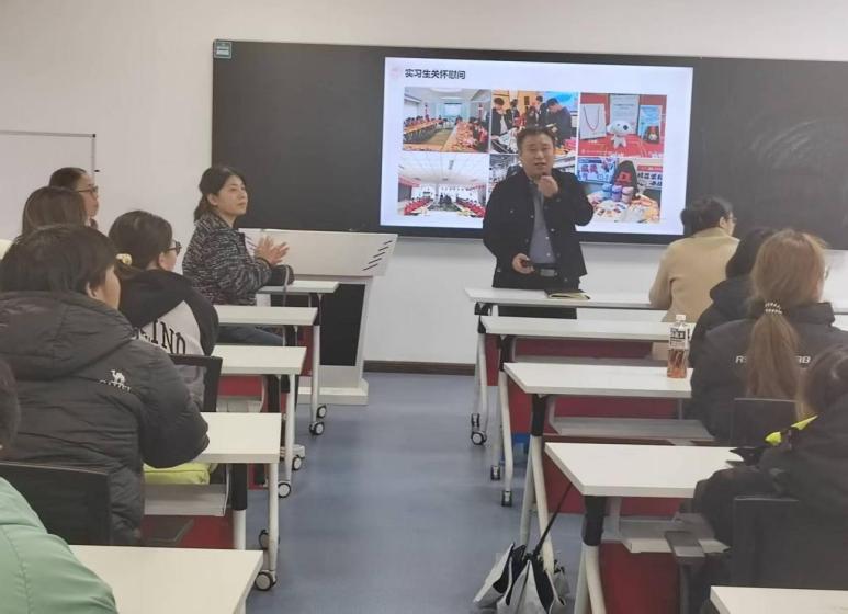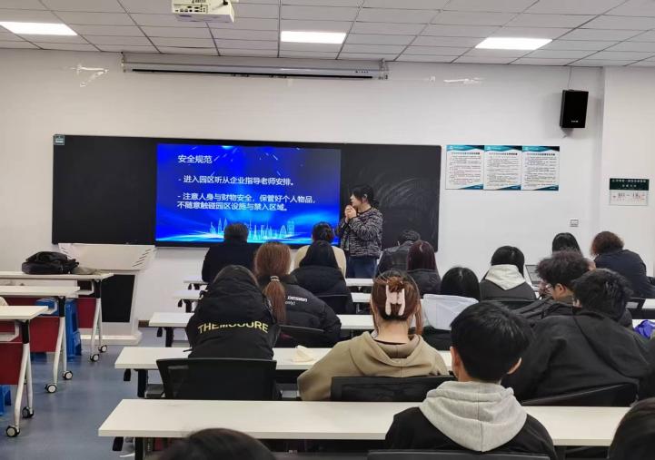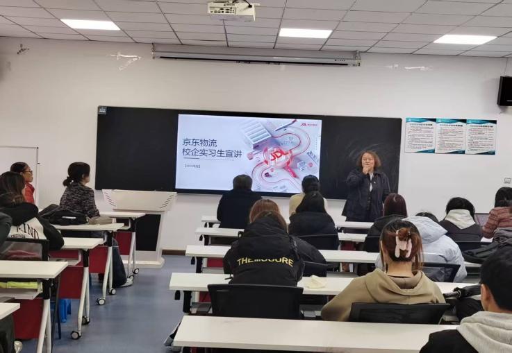 会上,首先由现代物流管理专业教研室主任毛春华进行实习动员和安全规范讲解;之后沈阳京东人资总经理丁旭佳介绍企业实训内容、要求、工资及食宿安排情况。