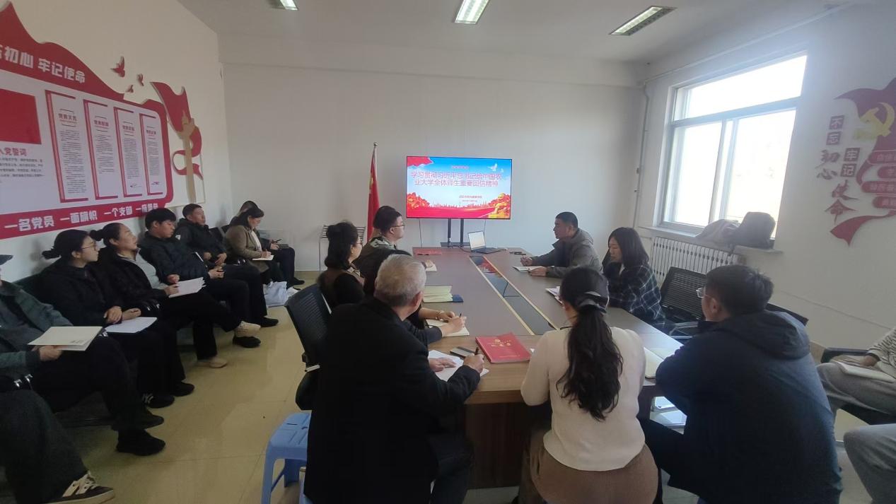 10月29日,运动休闲与健康学院召开全体党员会议,专题学习了党的二十届四中全会精神及习近平总书记给中国农业大学全体师生的重要回信精神,并部署了近期重点政治理论学习任务。党总支书记王军主持会议。