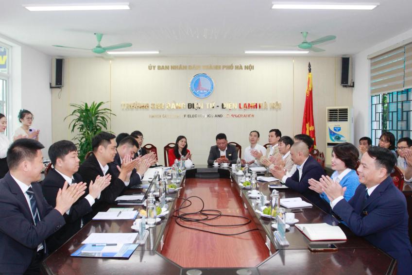 11月25日,代表团访问了越南河内电子与制冷职业学院,双方围绕“越南河内与中国辽宁在先进制造业教育领域合作进展”“先进制造业人才培养和职业文化推广的研究”等多个学术课题进行了深入交流与研讨,并就先进制造业相关专业建设、师资培养等议题进行了深入探讨,同时为两校合作共建的“墨子工坊”举行了隆重的揭牌仪式。