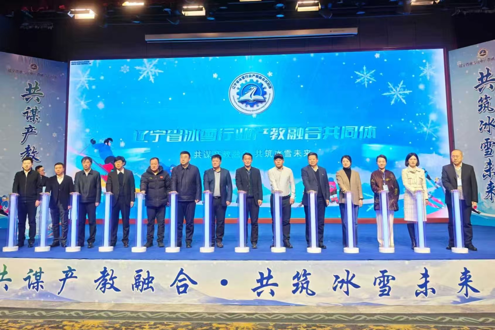 2026年1月14日,在辽宁省教育厅、辽宁省体育局、辽宁中华职业教育社、辽阳市政府、辽宁省冰雪运动协会的支持指导下,由辽阳弓长岭滑雪场、沈阳体育学院、辽宁职业学院及相关115家企业、学校代表共同成立了辽宁省冰雪行业产教融合共同体,推动冰雪产业与职业教育深度融合,创新特色人才培养模式,为冰雪经济全产业链发展注入动力和活力。我院作为职业院校代表,与企业代表、高水平高等学校代表共同发起并筹办了会议。我院党委副书记、院长宋连喜作会议欢迎辞,学院副院长刘文星主持会议。